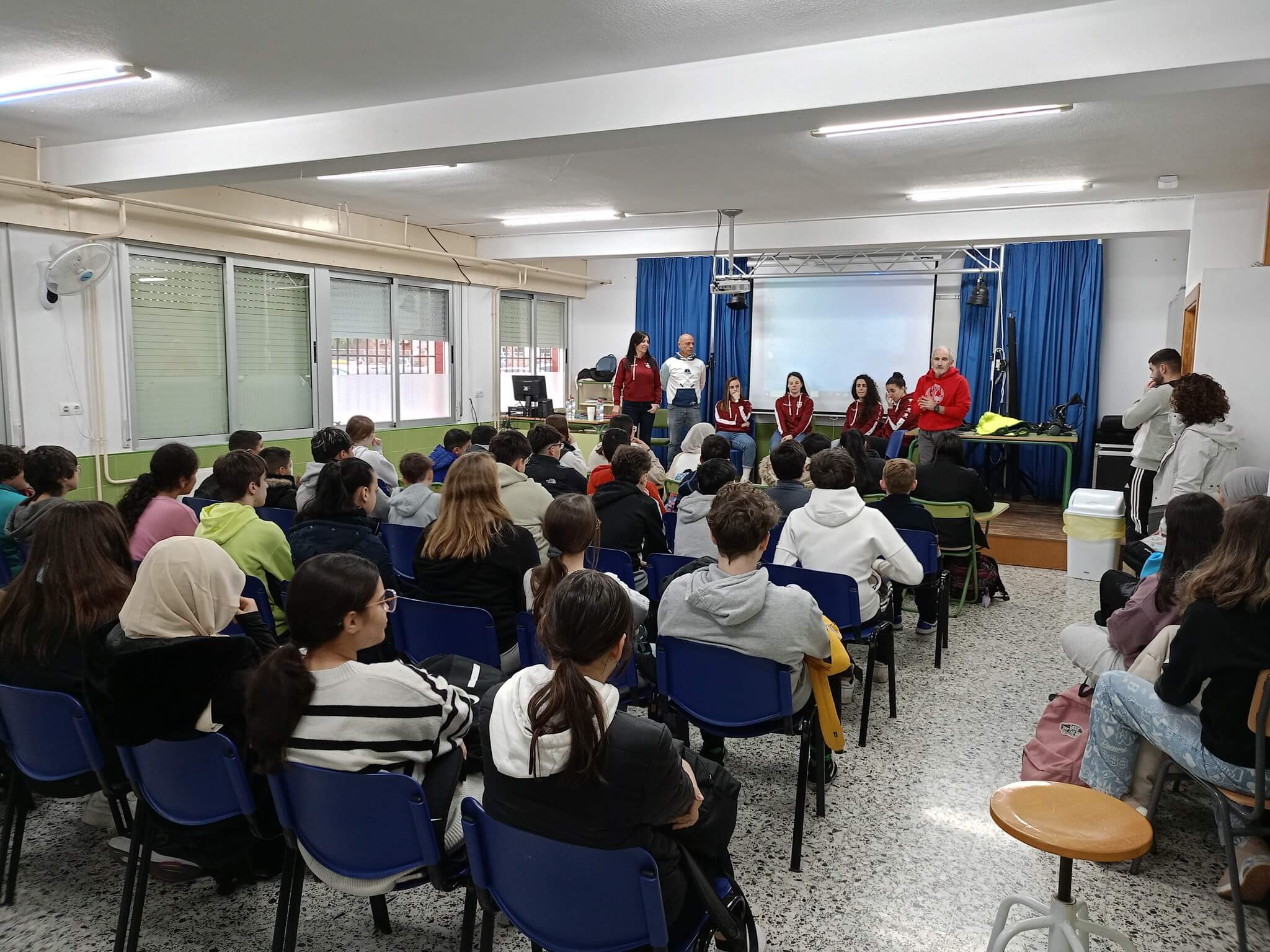 Excelente comienzo de nuestros encuentros con deportistas dentro de las actividades programadas en los II Juegos olímpicos del IES Manuel Tárraga. El pasado lunes conocimos el proyecto “For fun” de la mano de Mª Ángeles Andúgar López, directora del proyecto, que consiste en acercar el deporte del fútbol sala femenino al alumnado. También nos acompañaron; Luciano Herrero, Presidente comité fútbol sala Región de Murcia y las jugadoras internacionales de Fútbol sala, Miriam Zamora, Ana María Pino, Mª Ángeles Pino, Alba Gandía y Mayte Mateo. Charla muy amena donde nuestros alumnos pudieron compartir las experiencias de las jugadoras y su pasión por el fútbol sala.